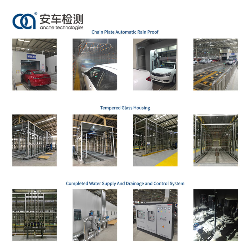 Srpski језик Anche ACLY-P (personbil) C (nyttekjøretøy) T (tog) automatisk regntett testsystem er utstyret uavhengig utviklet og produsert av Anche. I henhold til etterspørselen fra forskjellige kjøretøymodeller av den regnsikre, utfører den kontursprayen i flere retninger, justerer regnintensiteten i sanntid gjennom frekvensomformeren og vannutskilleren, og konfigurerer også kjedetransportbåndet, heisen, og den automatiske fønemaskinen som i stor grad forbedrer kompatibiliteten og deteksjonseffektiviteten til den regnsikre. Systemet eier slike egenskaper som profesjonell grunnstruktur og boligplanlegging og -design, ferdigstilt vannforsyning og avløp og kontrollsystem for å sikre utstyrssikkerhet, stabilitet, skjønnhet og nytte. Produktene eksporteres til utlandet, noe som er mye populært.